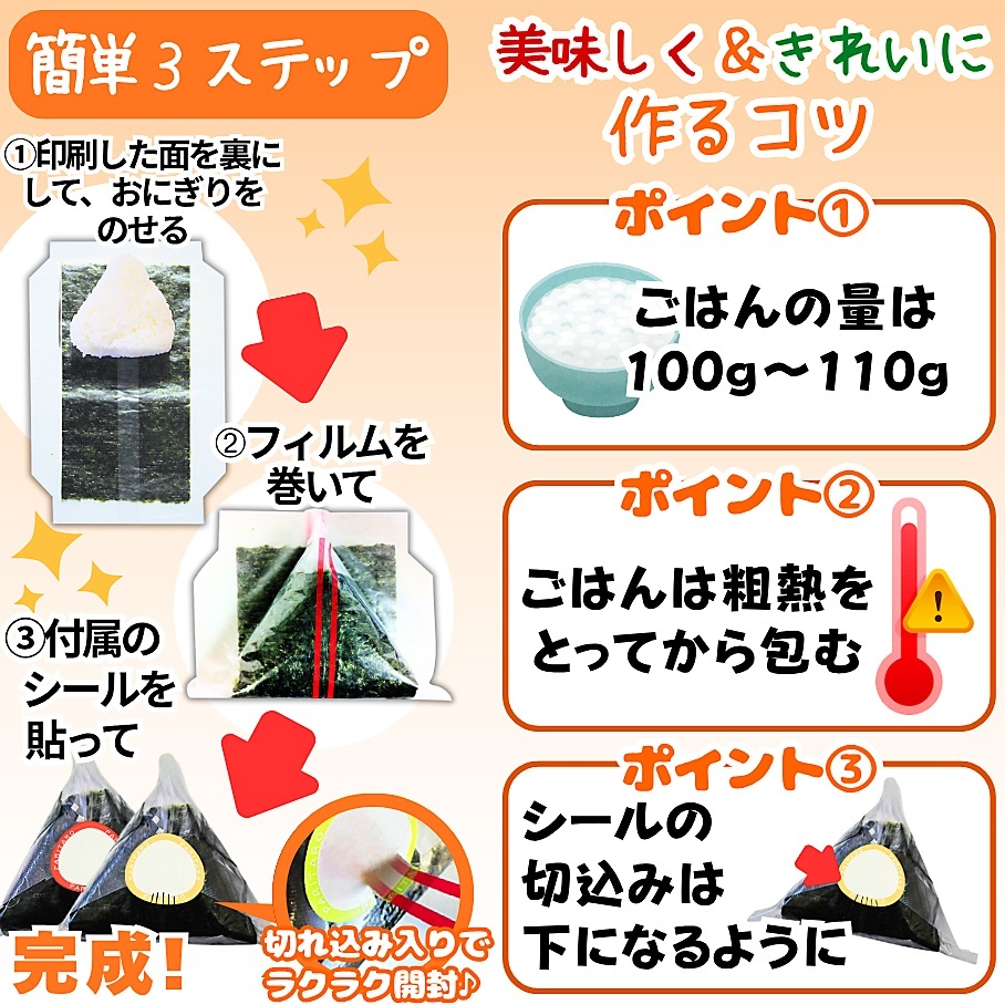 海苔が美味しいです。購入者 さん作り方も簡単です。おにぎりの目安になるグラムを書いてあるので、それを参考にしています。また、開ける時も簡単です。でも、一番のお気に入りは、海苔自体がとても美味しいことです。それで、リピート買いしました。ショップからの返信いつも「中川パリ太郎」のご利用ありがとうございます!